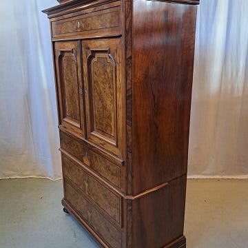 Fr. d. VII. sølvtøjsskab af mahogni og nød.
