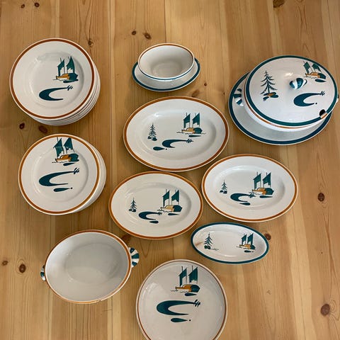 85 dele aluminia stel (enkelte dele Københavns Porcelains maleri)