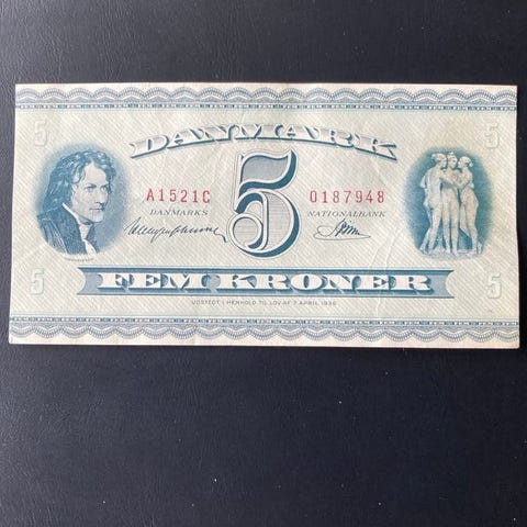 1 x Norsk 5KR år 1937 & 3 x 20 Kr sedler
