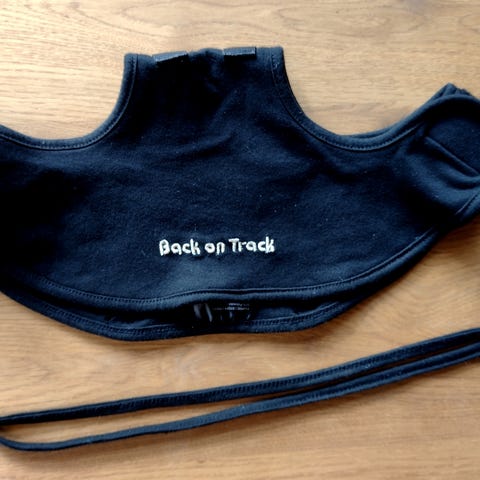 Fir tech pro rygvarmer med tre niveauer. Brugt 10 gange og fejler intet. Plast på batteripakke ved en fejl åbnet lidt, dette er lukket med tape og har ingen indflydelse på funktionen. Kan sendes for købers regning. Rød ekstra dækkenstrop kan medfølge.