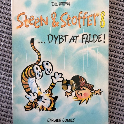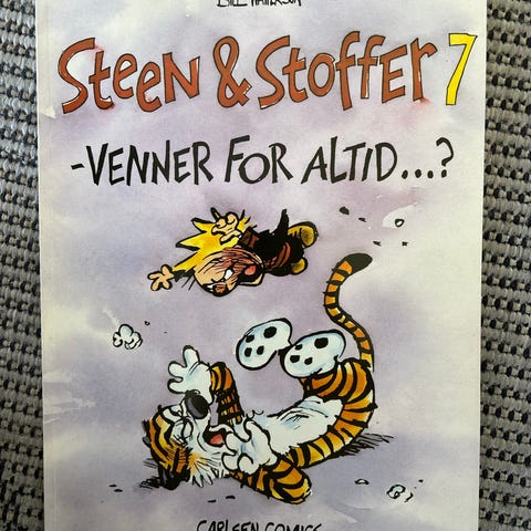 Carlsen Comics Steen & Stoffer tegneseriealbum. Dansksprogede samlinger af Steen & Stoffer-striber i bogformat med farveillustrationer på omslagene. Velegnet til læsning for både børn og voksne, der kan lide humoristiske tegneserier.
