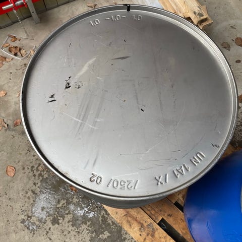 Gruekedel i rustfri syrefast 316 stål. Med gasbrænder og div. termometre. Kan tippes for tømning af tank. Ca. 200 l.