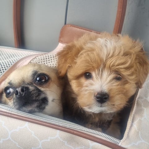 Forældrene er familiehunde med stort F og har et robust sind. Og de vil trives i familier med børn, og har begge også knyttet venskaber med husets katte.