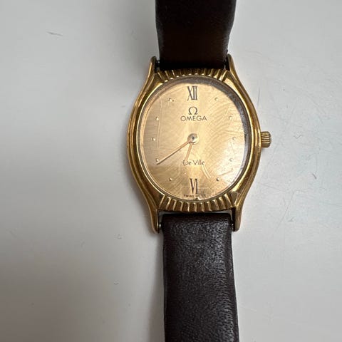 Dameur, Omega, Seamaster Ladymatic fra 1961. Lille fint vintageur i fin stand. Kassen er guldbelagt og måler bare 20 mm. Værket er kaliber 455 med automatisk optræk. Ny krone, glas og rem.