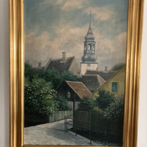 F. Svendsen - bybillede maleri med guldramme