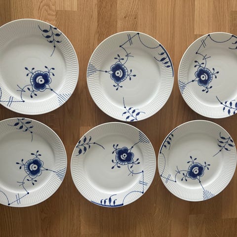 Blå Mega Riflet Dyb Tallerkner 6 stk ø17cm