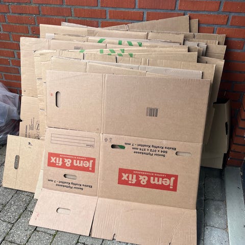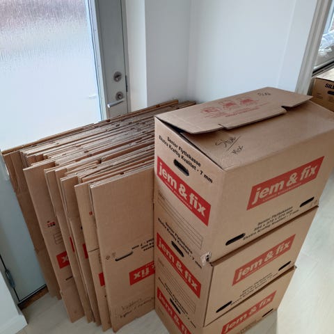 Kraftige flyttekasse fra Harald Nyborg, senior størrelse. Sælges billigt. Har 40 styk, men sælges også i mindre bundter.