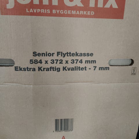Kraftige flyttekasse fra Harald Nyborg, senior størrelse. Sælges billigt.
