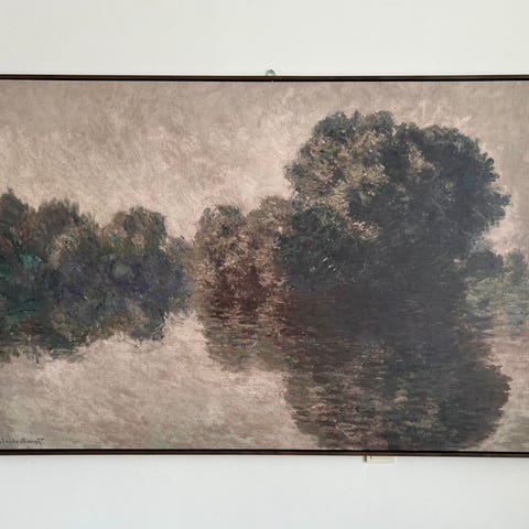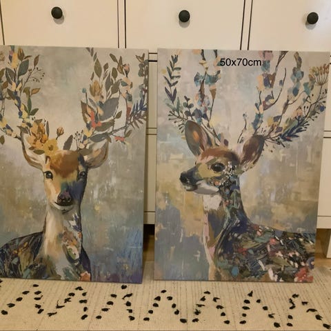 IKEA vægkunst med naturmotiver i træramme. Sættet består af to billeder med fotoprint: ét med en sø og en bro samt ét med et cirkelformet spejlbillede i vand. Begge billeder er indrammet i en enkel ramme med trælook og har en lys kant omkring motivet. Velegnet som vægdekoration i stue, soveværelse eller gang.