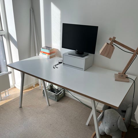 Hay loop stand bord i rigtig god stand. Hvid bordplade og hvide ben. Str. 180cm og 87,5 cm i bredden.