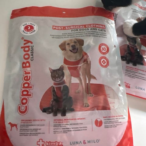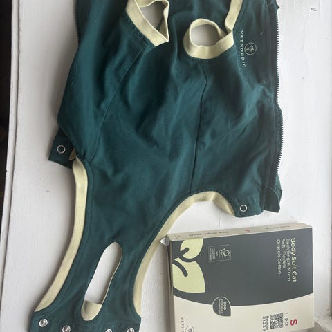 Bodystocking til kat eller kanin. Brugt i 10 dage efter operation. Størrelse 2XS (33-42 cm fra hale til nakke).