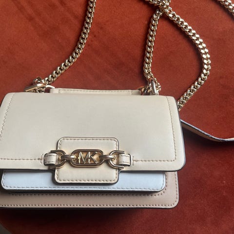 Elegant Michael Kors taske i den populære brune “Luggage” farve med ikonisk MK logoprint.