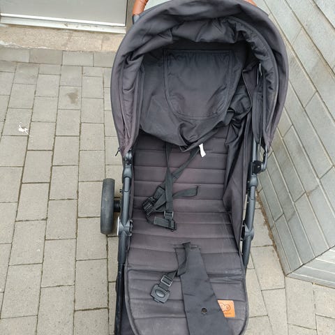 Kinderkraft klapvogn i sort. Vognen har justerbart ryglæn og fodstøtte samt frontbøjle. Håndtag og frontbøjle har betræk i læderlook. Der er opbevaringskurv under sædet og kaleche over sædet. Velegnet til transport af ét barn på gåture og hverdagsbrug.