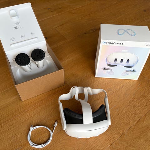 Sælger mit Meta Quest 3 VR-headset i næsten helt ny stand. Headsettet har kun været brugt i omkring 2-3 uger og fungerer fuldstændig perfekt uden nogen form for skader eller slid. Det fremstår derfor stort set som nyt.
