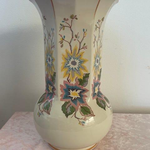 Fin urtepotte med sødt mønster i sarte farver.