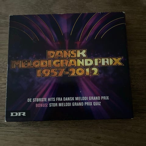 Grand Prix Greatest Hits CD. Musik-cd med opsamling af Grand Prix-sange. Standard cd-format i plastikcover med trykt for- og bagside, hvor bagsiden viser trackliste med de inkluderede numre.