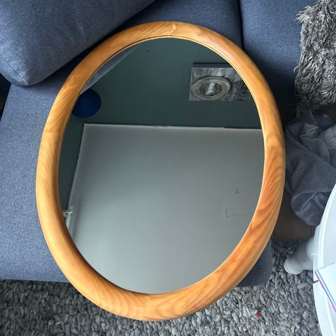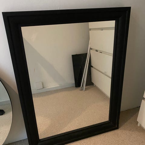IKEA Molger spejl med hylde, der tilbyder både en reflekterende overflade og praktisk opbevaring.