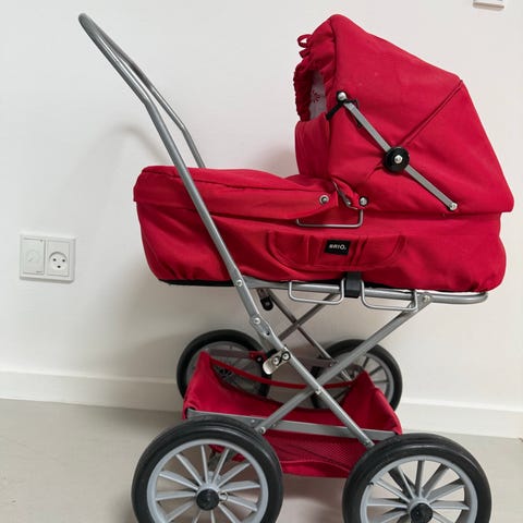 BRIO dukkevogn, som kan fungere både som barnevogn og klapvogn med indstillelig kaleche og håndtag. Inkl. diverse dukker fra hhv. Baby Born, Bebellino og Vtech . Inkl. diverse dukketøj, potter, pusletaske, bæresele, sutter, sutteflasker, tallerkener, tudkopper, bestik, pusleunderlag, hagesmække. Mere tøj end det på billedet.