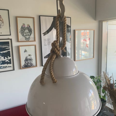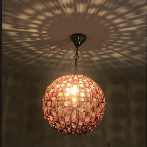 Super fin lampe i “diamant” look. Den giver et rigtig hyggeligt skær på væggen og i loftet.