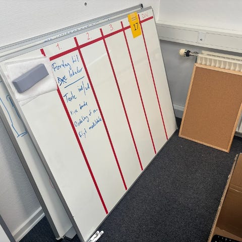 Whiteboard tavle. Måler: 120 x 120 cm. . Oprydning fra virksomhed
