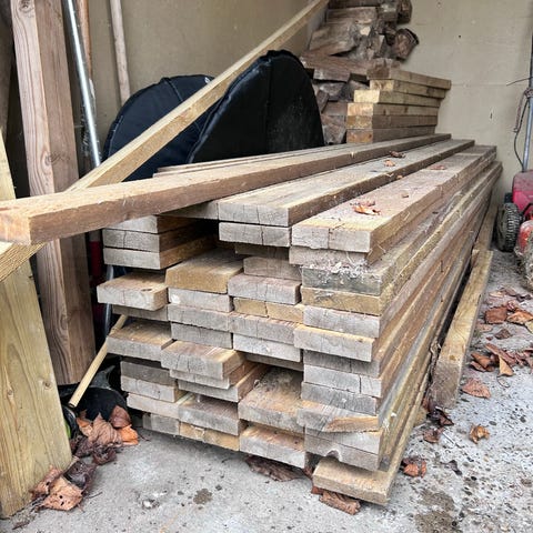 Trykimprægnerede brædder. Mål: 26 stk: L: 480 cm. 12 stk i ass længder.