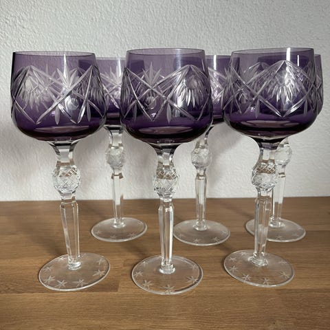 i Rømerstil, udskårne klare glas. 10 rødvin, 12 hvidvin, 11 portvin og 11 cockailglas sælges samlet