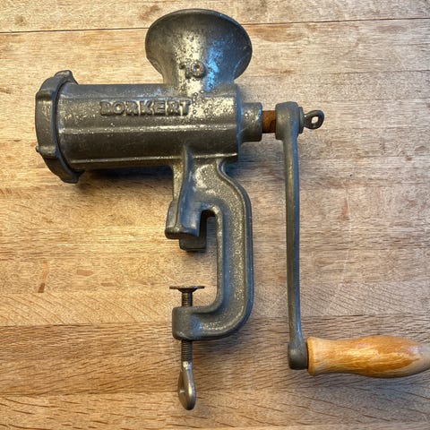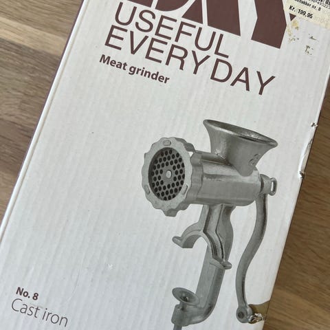 Porkert nr 8 kødhakker ny og ubrugt, æske i dårlig stand