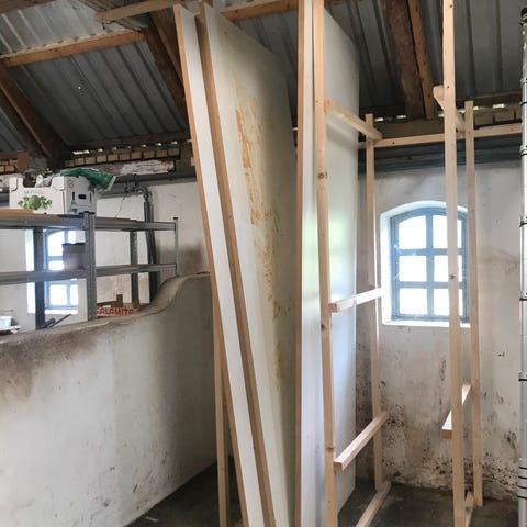 Melaminplade, Spånplade beklædt med melamin. 16 mm. Hver plade består af 2 stk. sammenfalsede plader. H: 190 cm og 84 cm, B: 105 cm. 5 stk. i alt Pr. stk.