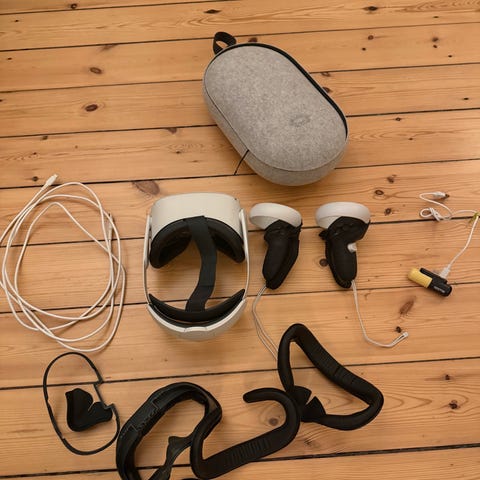 Jeg sælger dette quest 2 holder den har et lækkert læder håndtag og den har et flot og kompakt design og den kan holde alle dine oculus ting og mere