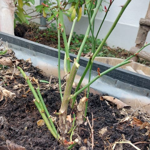 38 stk. White fairy roser. Sat som barrods forår 2022. Billede i blomst fra juli, de to andre billeder er som de står nu.