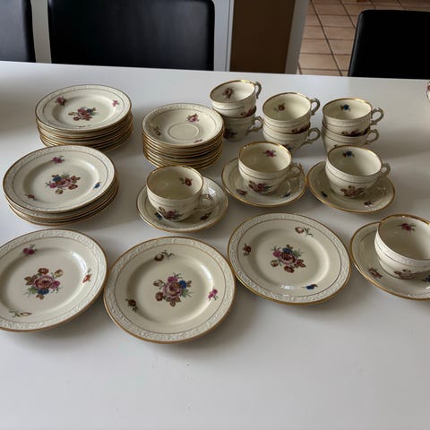 Rosenborg kaffestel kande sukkerskål og flødekande med blomstermotiv