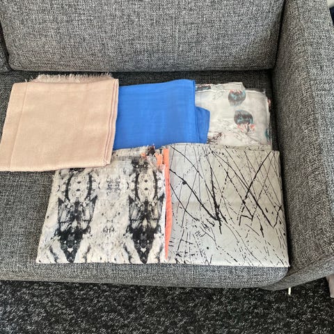 10 brugte tørklæder i forskellige farver og størrelser 60kr for dem alle. Trænger til en opfrisk i vaskemaskine