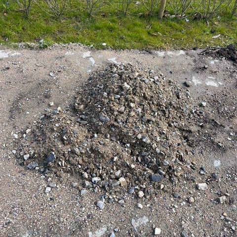 Gives væk da det er i overskud. Er nok 7-10 fulde skovle tilbage
