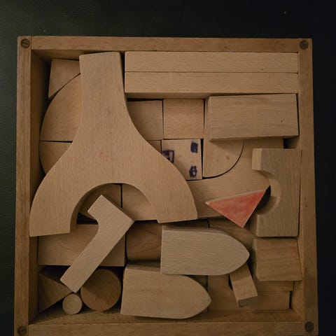 Byggeklodser , andet babylegetøj, Rigtig gamle byggeklodser med bogstaver, tal og symboler.