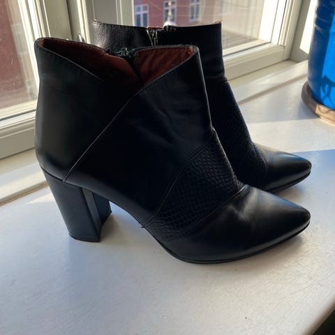 Smukke højhælede sorte støvler i læder af mærket desiree. De er lavet i Spanien og er særligt skånsomme at gå i!