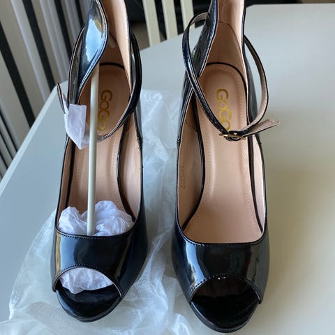 Helt fantastisk flotte sko med hæl af "træ" og åbne sider i skoens længde og tå.