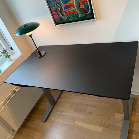 Højde: minimum 55 cm og kan manuelt justeres højere. Som det står nu er det 94 cm