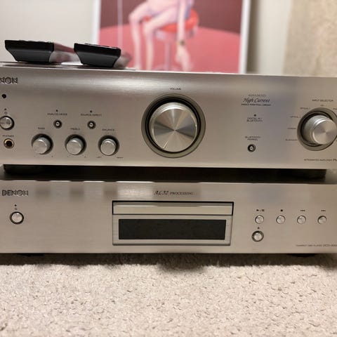 Denon stereoforstærker i sort. Modellen har frontbetjening med volumenknap, balance, loudness og kildevalg. På bagsiden er der flere analoge indgange til f.eks. cd-afspiller, tuner og andre lydkilder samt udgange til højttalere med skrue-/klemterminaler. Forstærkeren er egnet til brug i et stereoanlæg til afspilning af musik fra forskellige kilder. Alt virker. Befinder sig i Aarhus C.
