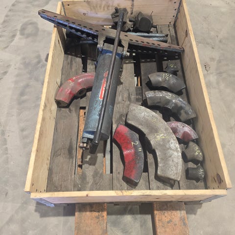 rørbukker til metalrør. Modellen er mærket til 15 mm rør og har gradskala på bukkeskiven til præcis vinkling. Håndbetjent værktøj med to håndtag og gummibelagt greb i den ene ende for bedre håndtering. Egnet til bukning af mindre metalrør, fx til VVS- og installationsarbejde.
