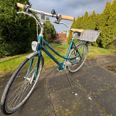 Batavus cykel til kvinde med stelstørrelse M og 28"/700c hjul. Cyklen har lav indstigning, 8 gear, lås mm. Har tørt og varmt og ingen tegn på rust nogen steder.