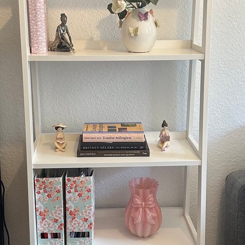 Hvid stigereol, ukendt mærke. Fin stand, men med overfladiske brugsspor i malingen. Dybden er målt ved nederste hylde.