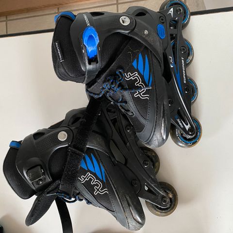 Delta-Sport rulleskøjter / inliners i str. 37-41. Farvekombination sort og lyserød med grafisk tryk på siden. Justerbart lukkesystem med spænder og velcrorem for stabil pasform omkring anklen. Rulleskøjterne har fire hjul på hver støvle og bremseklods bagpå. Egnet til børn, der ønsker rulleskøjter til leg og motion på jævne underlag.