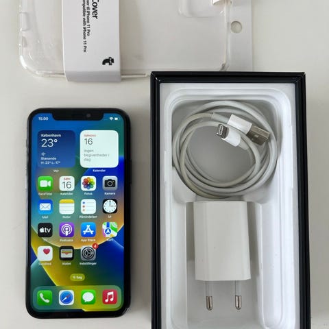 super velholdt iphone 11, med 100% batteri. medfølger kasse , cover , oplader og ledning.