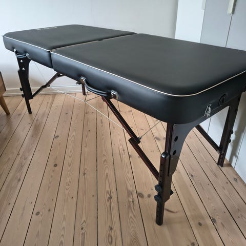 Den har reiki-endestykker, der giver plads til dine ben under briksen, 8 cm ekstra tyk 3-lags skumpolstring; runde hjørner der er smukke at se på og nemme at komme omkring, hardwood ramme, luksuriøs 100% PU-vinyl betræk i 6 farver og har en vægt på kun 15 kg.