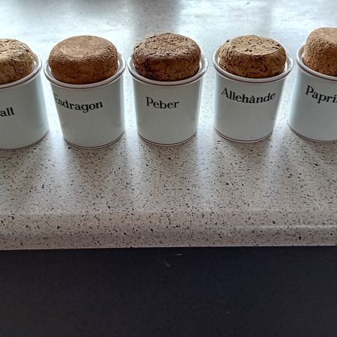 Krydderrikrukker og tallerkenrække/bogholder, - med retro kryderrikrukker (kogebøger er ikke med i prisen men har flere til salg)