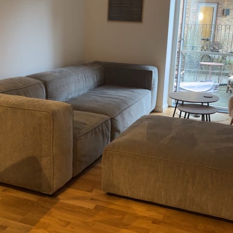 Sælger denne Nordstrøm sofa i grå fra Ilva. Den er købt i slut 2022. Fra røgfrit og hunde frit hjem. Sælges udelukkende grundet flytning.