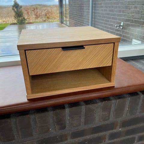 Væghængt sengebord fra Ilva. Enkelte plamager i overfladen, men ellers super fin.