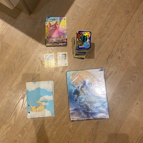 Pokemon binderen er i fin stand og der kan være op til cirka 80 kort i den.