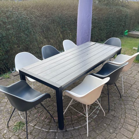 Bord med 2 tillægs plader + 8 stabel stole