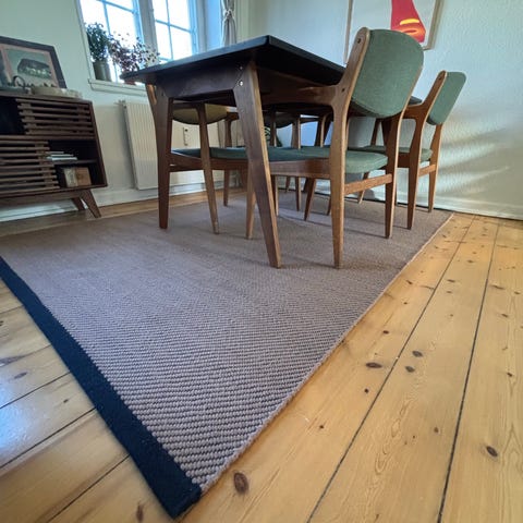 Hay Raw Rug No 2 tæppe i størrelsen 170x240 cm. Rektangulært gulvtæppe i grå nuance, velegnet til stue, kontor eller andre opholdsrum. Tæppet har en enkel, vævet struktur.